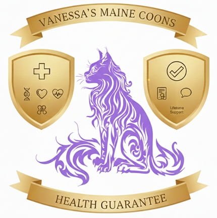 At Vanessa’s Main Coons cattery, the health and well being of our Maine Coon kittens is our top priority. All of our breeding cats as well as their parents and generations before them undergo extensive genetic testing to ensure the strongest possible lines. Every kitten comes with a health guarantee covering all genetically inherited conditions until the age of one year. In the rare event that a genetic health issue arises within this period, the family will be offered a replacement kitten of their choice from a future litter.